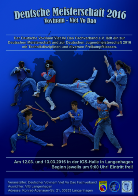 VfB Langenhagen. Am 12./13. März hatte der VfB zum zweiten Mal zur Deutschen Jugendmeisterschaft und Deutschen Meisterschaft im Vovinam - Việt Võ Đạo eingeladen. Hierbei handelt es sich um eine vietnamesische Kampfkunst, die in Deutschland noch nicht sehr verbreitet ist. Alle Vereine des noch jungen Deutschen Vovinam Viet Vo Dao Fachverbands (DVVF) waren der Einladung gefolgt und mit über 50 Athleten – unterstützt durch fast noch einmal so viele Betreuer - vertreten, die in den...