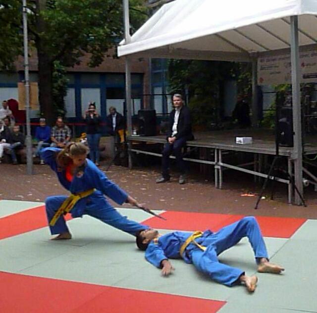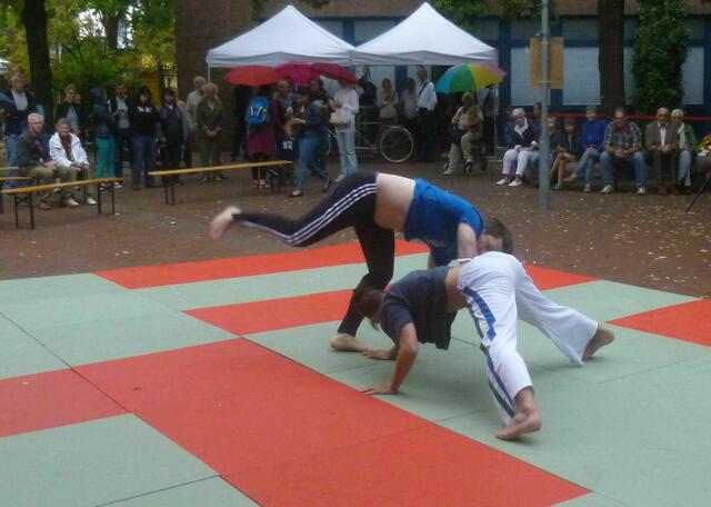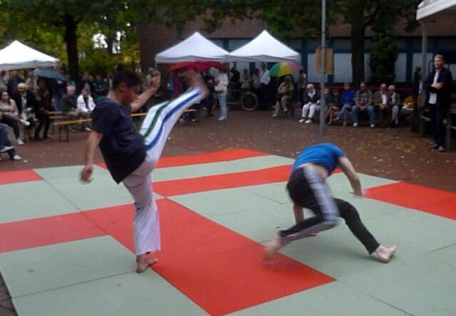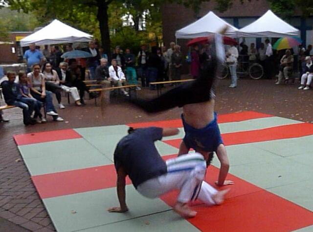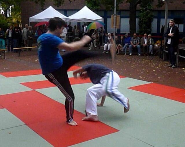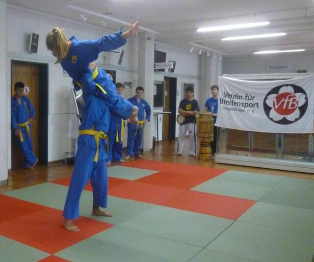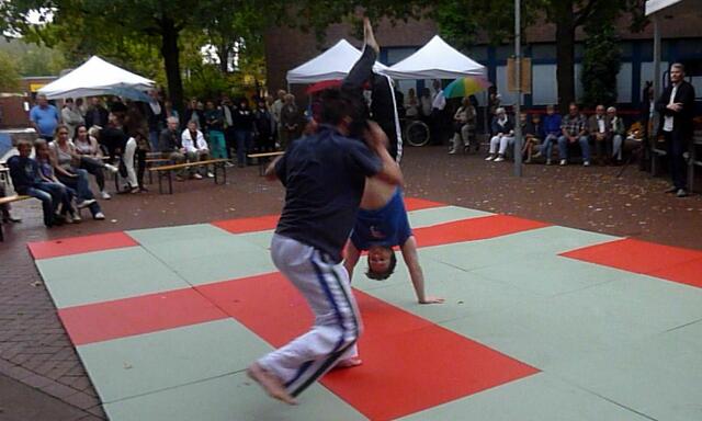 VoViNam und Capoeira beim Bürgerfest im Rahmen des Entdeckertages VfB Langenhagen. Zahlenmäßig dezimiert, aber hoch motiviert trafen die Vovinam - Việt Võ Đạo und die Capoeira Sparten des VfB Langenhagen am Sonntagmittag im Rathausinnenhof ein. Hier fand das Bürgerfest der Bürgerstiftung Langenhagen statt. Leider setzte schon während der ersten Vorführung des Tages Regen ein, so dass die Sportler auf der Matte auf die Bremse treten mussten – die Darstellung der Selbstverteidigung mit einem...