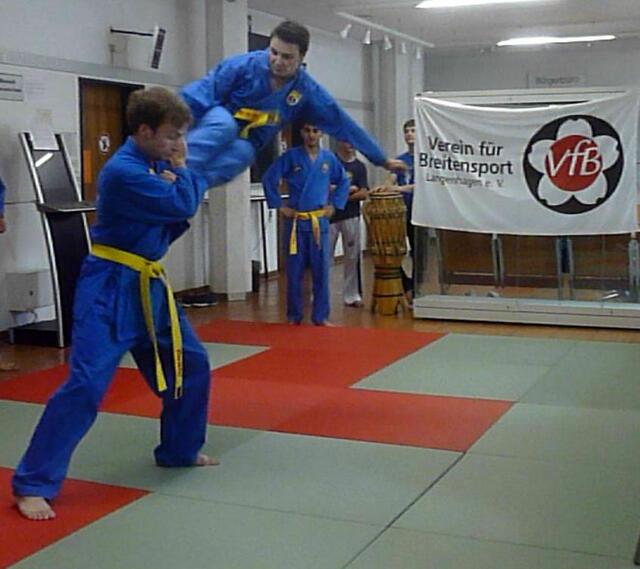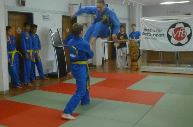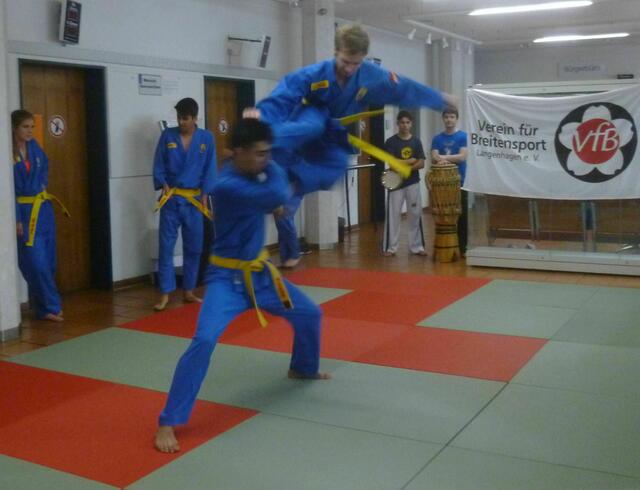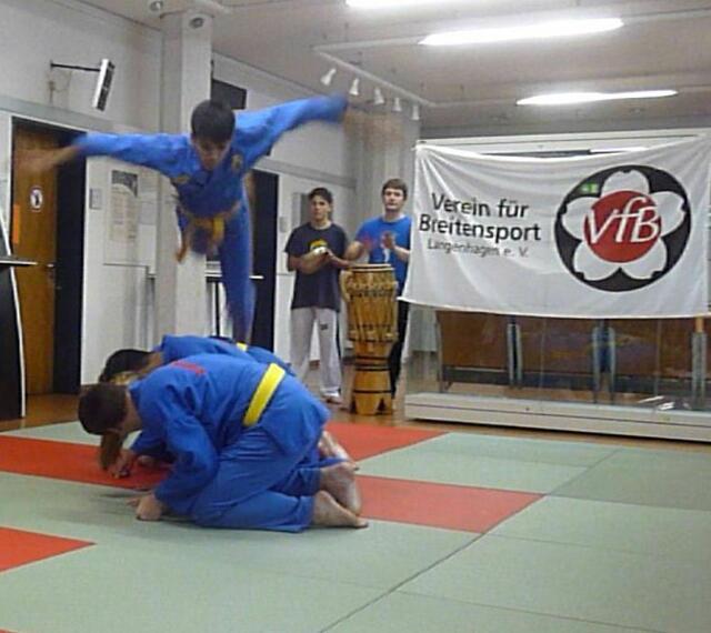 VfB präsentiert internationale Kampfkunst aus Europa, Vietnam und Brasilien VfB Langenhagen. Ihren Einkauf konnten Besucher des CCL am Dienstag mit Kampfkunst rund um die Welt verbinden. Los ging es in Vietnam. Beim VoViNam sind die Beinscheren am spektakulärsten und so staunte das Publikum nicht schlecht über die fliegenden Kampfkünstler. Passend zur WM ging es brasilianisch mit Capoeira weiter. Auch hier nutzen einige ihre Chance gleich einmal den Nationalsport des WM-Ausrichters mit den VfB...