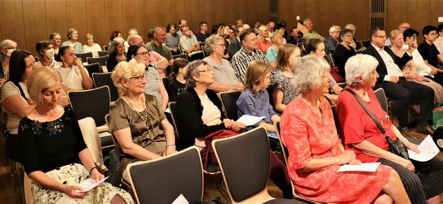 Nach dem Konzert stellten sich v. l. Heike Mayr-Hof, Eva Kellermann, Renate Materna, Sofia Kurek, Krystyna Hüttner, Florian Hirle, Adriana Gomez, Helmuth Baumann und Hartmut Hüttner unter dem Applaus des Publikum dem Fotografen.
