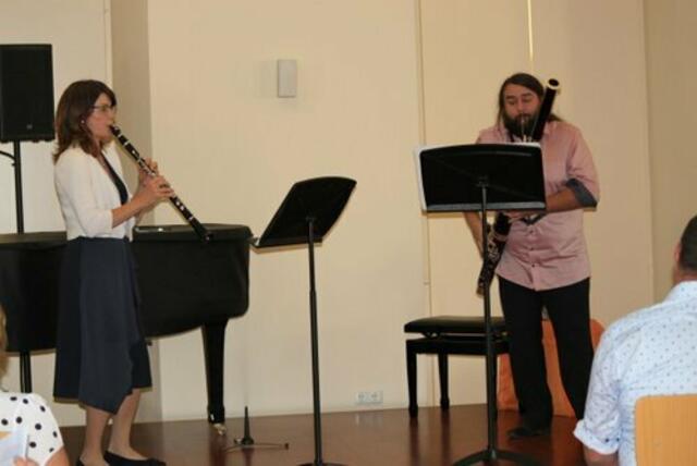 Victoria Ertl und Musikdirektor Manfred-Andreas Lipp demonstrierten die Funktionsweise und Methode von Klarinettenunterricht und alle Musiklehrer zogen mit ihren Fachbereichen mit.