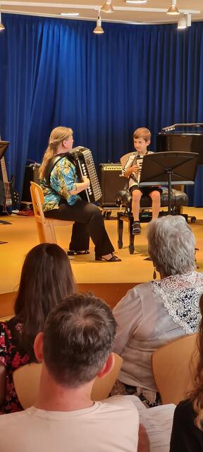 Am Samstag, den 20.07.2024 um 16.00 Uhr haben die Kollegen Renate Materna sowie Hartmut und Krystyna Hüttner zum gemeinsamen Klassenvorspiel ihrer Schüler, deren Eltern, Verwandte und Freunde in den Konzertsaal der Musikschule Wertingen eingeladen. Ein bunter, musikalischer Reigen stimmte die Zuhörer auf die bevorstehenden Sommerferien ein. James Rink, der erst im September 2023 mit dem Akkordeon angefangen hat, eröffnete mit Bravour, begleitet von seiner Lehrerin Renate Materna, mit dem...