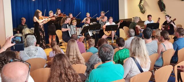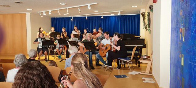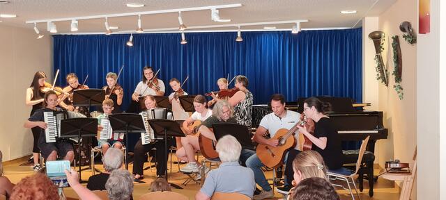 Zum Abschluss des Konzertnachmittags gab es ein gemeinsames Stück von Streichern, Akkordeon und Gitarren.