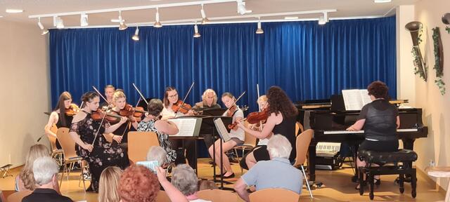 Die kleinen und großen Streicher probten als ganzes Orchester sowie in Registerproben in den Räumen der Musikschule unter der Leitung von Musiklehrerin Krystyna Hüttner.