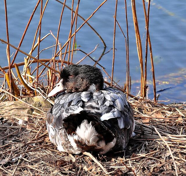 Das Nest besteht aus Schlamm und Halmen