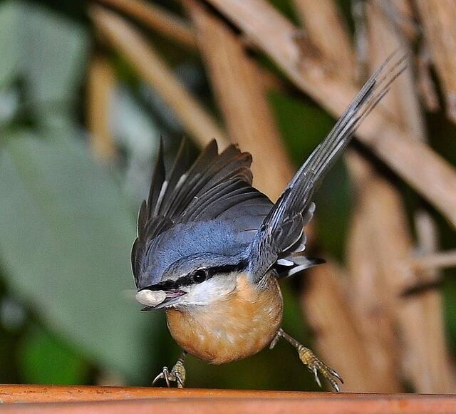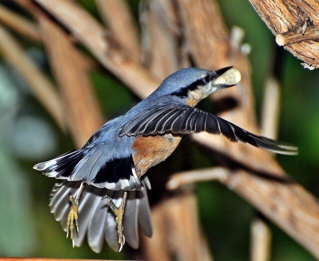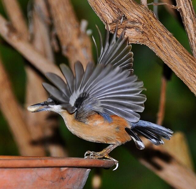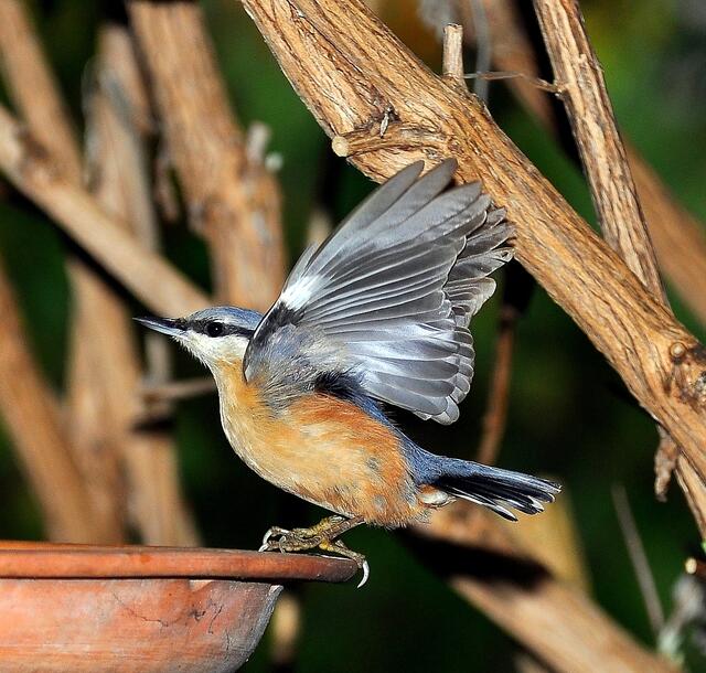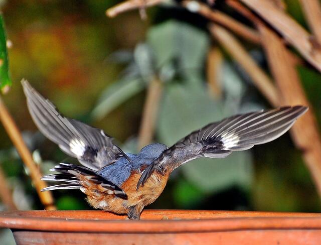 Ein Kleiber zeigt seine Schwingen