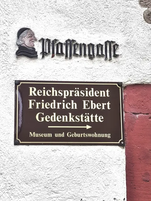 In Heidelberg verbrachte Friedrich Ebert (04. Januar 1871 - 28. Februar 1925) seine Kindheit und Jugend. Seine Eltern Karl, der Schneidermeister und seine Mutter Katharina, sie stammte aus der Landwirtschaft. Familie Ebert lebte mit sieben Kinder auf 45 qm. Die Wohnung lag im ersten Stock, über eine Holztreppe erreichbar. Schneidermeister Ebert beschäftigte tagsüber zwei Schneidergesellen. Das Wohnzimmer, ein Artbeitszimmer. Ein altes Foto zeigt Berge von Kleidung in diesem Raum.  Alles ohne...
