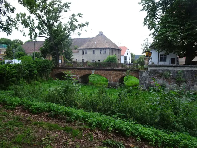 Das einstige Wasserschloß und der dazugehörige Wassergraben. Da, es vor einer Woche sehr heiß war, roch das Wasser sehr modrig.