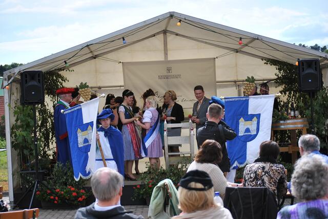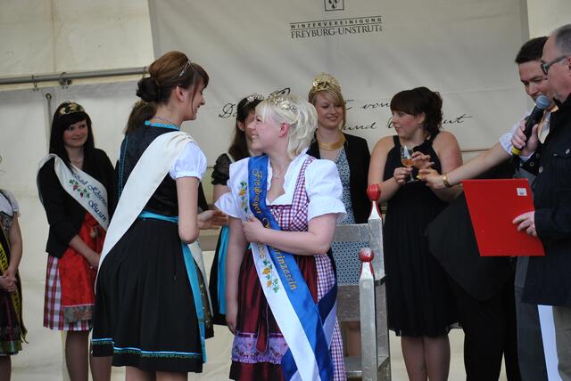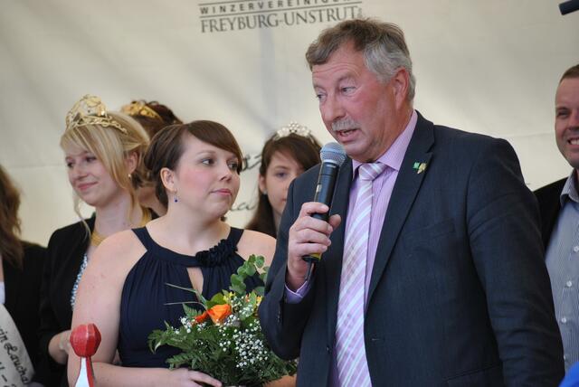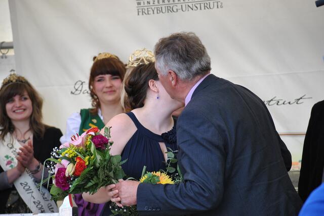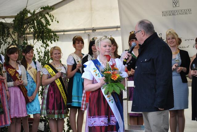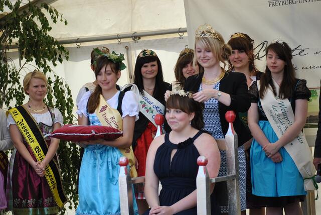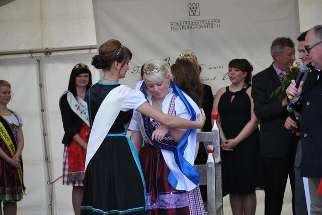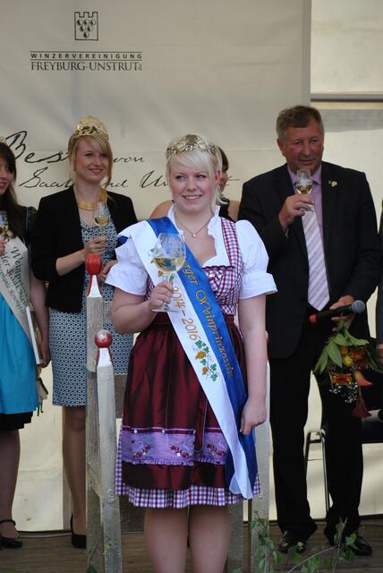 Am 16. August 2014 gegen 21 Uhr war es soweit. Die Krone der Lauchaer Weinprinzessin hatte eine neue Trägerin. Nach drei Jahren Amtszeit schied mit emotionalen Dankesworten die bisherige Weinprinzessin Susanne Rothe aus dem Amt. Schließlich wurde das Geheimnis dann gelüftet. Der Lauchaer Bürgermeister Michael Bilstein führte Christiane Bier auf die Bühne. Die Naumburgerin, die derzeit in Siegen ein Studium der Fachrichtung Management beendet, erhielt von ihrer Vorgängerin die Krone. Majestäten...