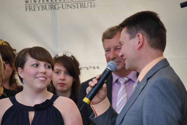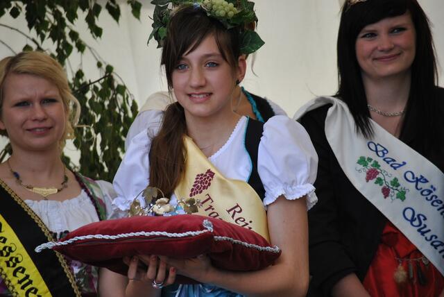 Heute Nachmittag wurde im Rahmen des 22. Thüringer Weinfestes die neue Weinprinzessin in Bad Sulza gekrönt. Carolin Rößler 23 Jahre alt, übernahm das Amt von Sandra Warzeschka. Carolin stammt aus dem Burgenlandkreis und ist in Rehehausen im Lanitz-Hasseltal zu Hause.