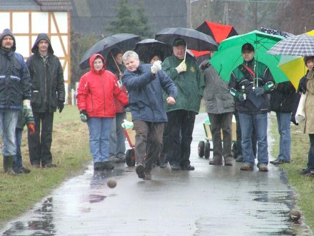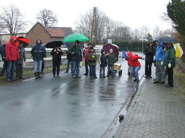 Der guten Laune tat das Wetter keinen Abbruch, somit machten sich 22 unerschrockene in vier Gruppen mit Bosselkugeln auf den Weg. Mit Häppchen, warmen und kalten Getränken ging es durch die Wendesser Feldmarkt. Natürlich wurden auch die obligatorischen Pausen an Kreuzungen durchgeführt und spätestens dann wurde auch ein Blick auf die schöne Landschaft rundherum sowie aktive Tierwelt geworfen. Zum Ende der Bosseltour wurden wir sogar noch mit Sonne verwöhnt und wollten fast schon eine weitere...