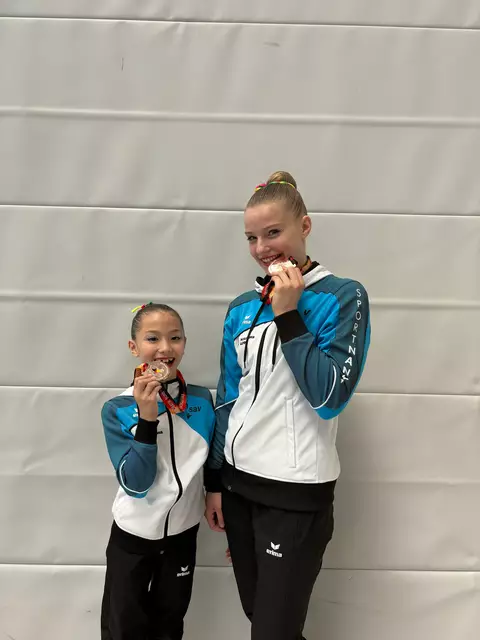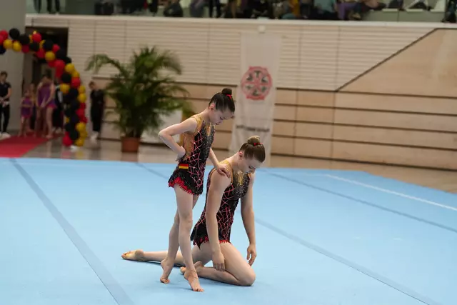 Für unser Aspire-Damenpaar Theresa und Liv begann der Wettkampf mit deutlich mehr Spannung und Aufregung als geplant. Liv hatte gleich zu Beginn des Einturnens Nasenbluten, weshalb die Vorbereitungszeit deutlich verkürzt wurde. Beide Sportlerinnen blieben aber total cool und zeigten diese mentale Stärke dann auch auf der Matte. Mit stabilen Elementen und einem tollen Ausdruck überzeugten sie die Kampfrichter und durften sich bei der Siegerehrung ihre wohlverdiente Goldmedaille um den Hals...