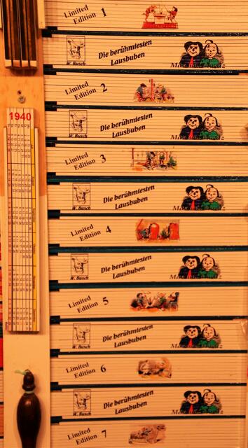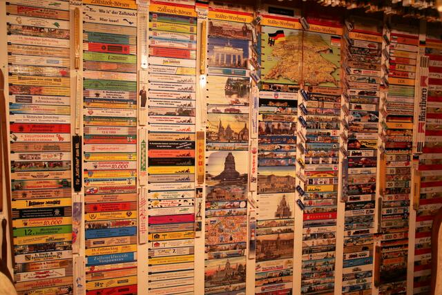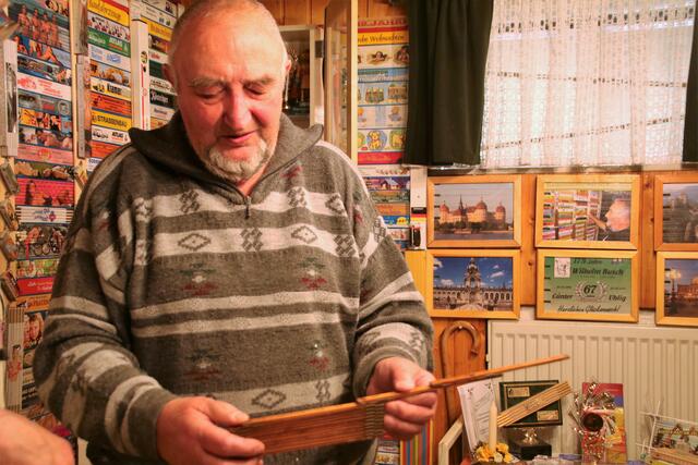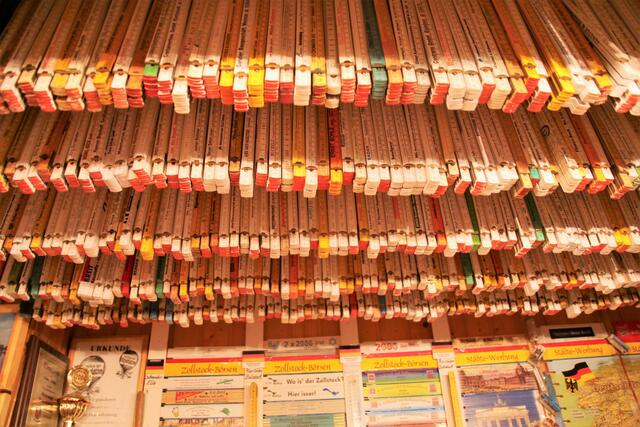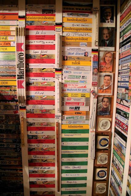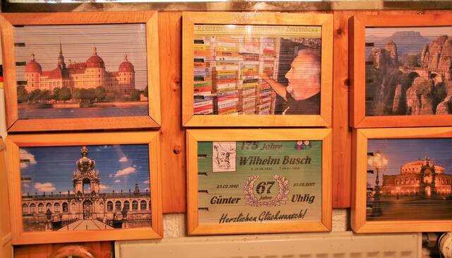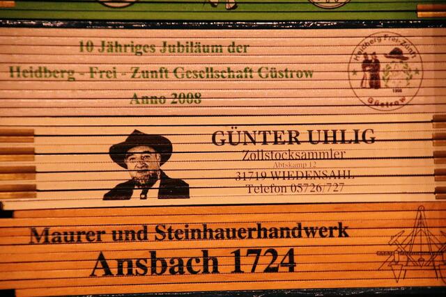 kann man bei Günter Uhlig in Wiedensahl. Günter Uhligs Sammelleidenschaft begann vor 40 Jahren und er hat bis jetzt über 36000 Exemplare zusammengetragen und es werden immer mehr. In seinem Kellergang und -räumen sind die Gliedermaßstäbe übersichtlich in speziellen Regalvorrichtungen nach Themen sortiert an der Wand befestigt. Von der Decke hängen tausende Zollstöcke nach Alphabet sortiert. Bei unserem Besuch konnten wir Zollstöcke mit Sternzeichen, mit Wilhelm Busch Motiven, mit Autogrammen...