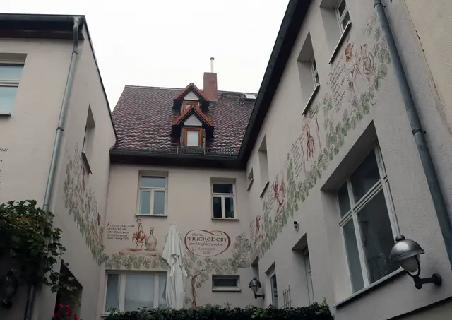 Bummelt der Besucher durch die kleine Einkaufsstraße in Merseburg entdeckt man sie, wunderschöne Gestaltung der Wände. Gotthard Straße, die Wilhelm-Busch Passage und die Stänkergasse sind gestaltet. Fantastisch. Herr Heinz Krüger, geb. 1925, Gebrauchsgrafiker/Künstler. Im Hersfelder Zehntverzeichnis, erste Erwähnung von Merseburg/Merseburc civitas. Diese Kaiserpfalz wurde zum Lieblingsort König Heinrich II und seiner Frau Kunigunde. Residenzstadt der Herzöge von Sachsen-Merseburg von 1656-1738....