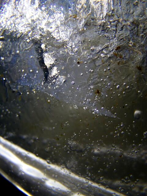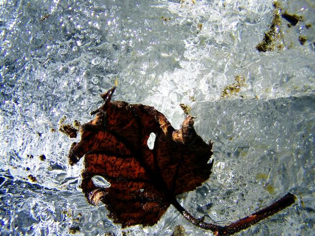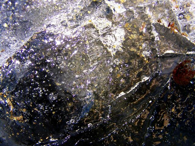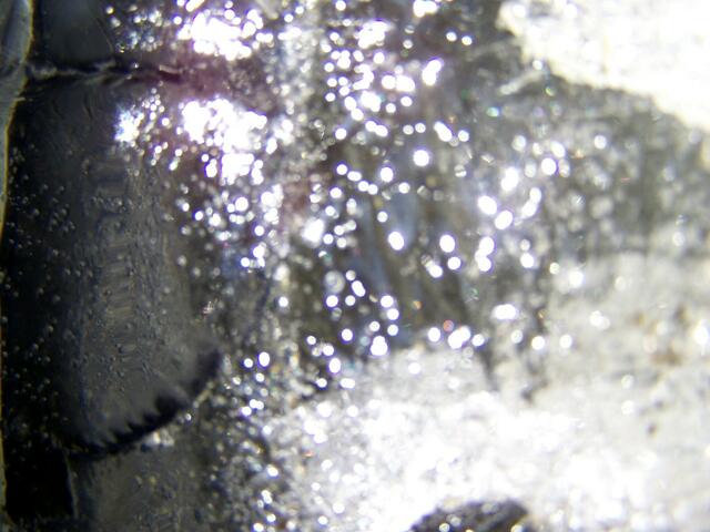 ………doch er wir nur noch von kurzer Dauer sein, denn mit den steigenden Frühlingshaften Temperaturen hat er es nicht so. Schaut man ihm etwas in die Tiefe, so kann man durchaus erkennen dass er gar nicht so rein ist wie er wirkt. Haben sich doch mit Schicht für Schicht Ablagerungen nieder gelassen die man mit bloßem Auge nicht als solche erkennen würde. Allerdings bringt bei ihm auch gerade auf den Fotos, mit Blitzlicht festgehalten, diese Ablagerungen Farbe in den Kristall, so wie bei manch...