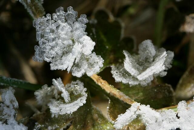 Bis jetzt haben wir einen Winter, der eigentlich gar keiner ist. Schnee ist bis jetzt Mangelware, aber ein paar frostige Nächte bescherten uns wenigstens etwas Reif. Allerdings gab es den fast nur am Boden und im Schatten. Aber das Bücken hat sich gelohnt, auch wenn das Kreuz etwas gelitten hat.
