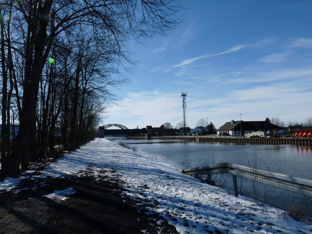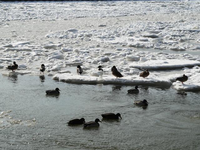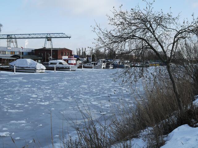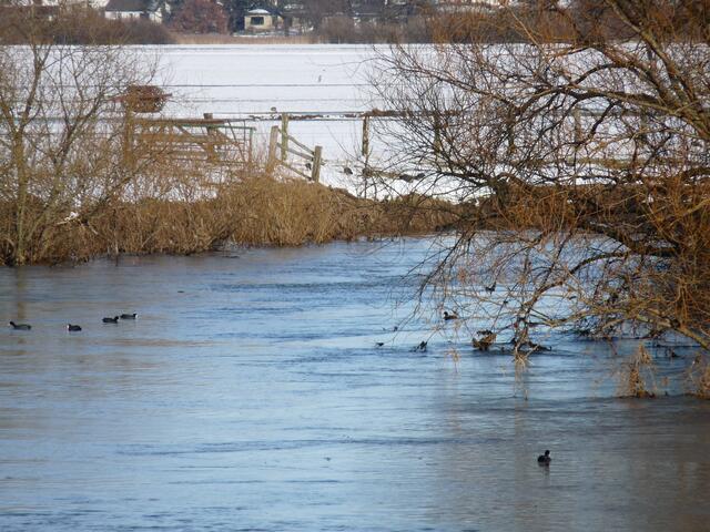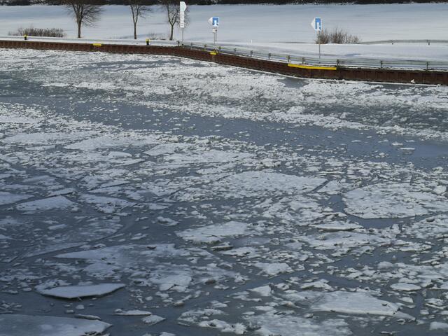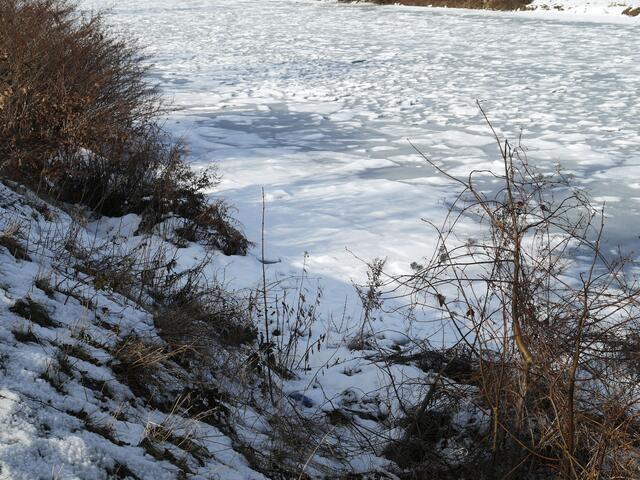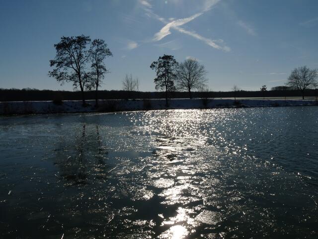 Es gibt keine Zweifel: Es ist Winter auf dem Steinhuder Meer! Irgendwo in der Mitte des Sees kann man noch offenes Wasser erkennen. Man sollte aber nicht Mutproben anstellen und einen Schritt auf das Eis versuchen. Es knackt erst und dann ..... dann merkt man, dass darunter Wasser ist - kaltes Wasser. Hunde halten diese Enthaltung nicht immer aus. Aber sie gewinnen an vielen Stellen die Mutprobe auch.