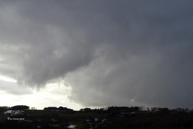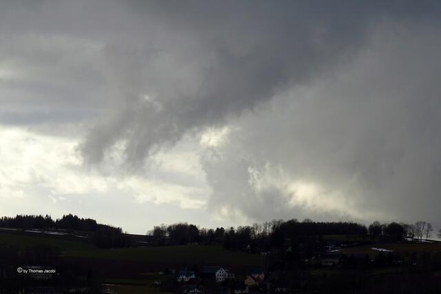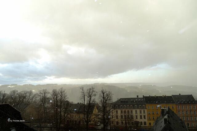 Nein, nicht eine hübsche junge Dame kam zu uns ins Erzgebirge, sondern Sturmtief Andrea. Naja, zumindest deren erste Ausläufer sind nun deutlich zu spüren. Was mit leichtem Wind und Regen begann, ging nach kurzer Zeit in einen Schneesturm über. Während es in der Stadt sowie mitten im Wald auf dem Pöhlbergrundgang noch relativ ruhig ist, bläst das Sturmtief in den höher gelegenen bzw. freien Flächen schon recht heftig. Ich war gerade mal eine halbe Stunde zwischen 11:30 bis 12:00 Uhr unterwegs,...