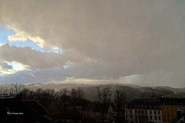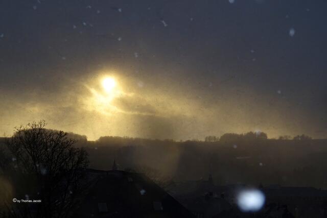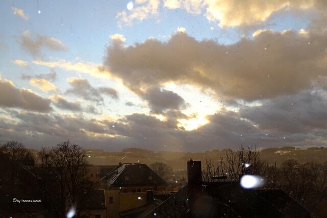 Wenn ein Wintersturm tobt und der Sonnenuntergang beginnt... Sturmtief Sabine zog auch heute ihre Kreise über Annaberg-Buchholz. Vor allem am Abend lohnte es sich, von geschützter Position aus dem Treiben zuzuschauen. Hier noch ein Bild mit Ton. 😉
