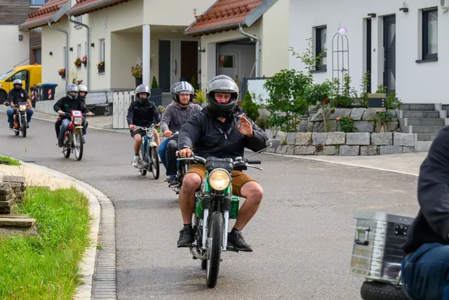 Bei prächtigem Sommerwetter luden die Zündappfreunde Mittelneufnach ein und viele Mopedbegeisterte folgten dem Ruf. Direkt an der Zündapp-Festhalle trafen sich knapp 100 Zündappfahrer aus der Umgebung um Ihrer gemeinsamen Begeisterung für historische Mofas, Mockicks und Motorräder Ausdruck zu verleihen und gemeinsam eine Ausfahrt durch die malerische Landschaft der Stauden zu unternehmen. Gefahren wurde auf kleinsten Nebenstrecken und am Ende waren alle begeistert von der schönen Tour. Zurück...