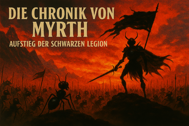 Lesedauer zirka 60 Minuten Die Chronik von Myrth – Aufstieg der Schwarzen Legion Prolog Im Reich Myrth, wo uralte Wälder wie grüne Meere die schroffen Gipfel umspülen und Flüsse als silberne Adern durch das Land fließen, schlummern Geheimnisse, die älter sind als Königreiche und Götter. Tief unter dieser Welt erstreckt sich ein Netzwerk aus Tunneln und Hallen, geformt von Erdkräften und der emsigen Weisheit winziger Herrscher. Dort wachsen Pilze so groß wie Zedern und kristalline Adern ziehen...