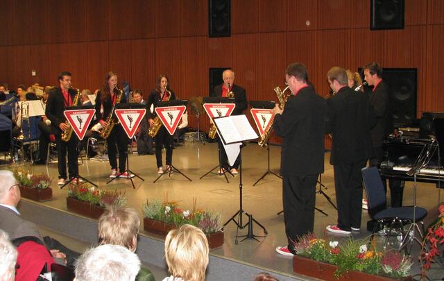 Die „Saxonics“ brillierten anschließend unter anderem mit einem Musette-Walzer und Henry Mencinis „Pink Panther“, dem Aushängestück eines jeden Saxofonisten. Natürlich durften auch sie nicht ohne Zugabe vom Podium.