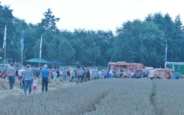Die Landtechnikfreunde Niederwalgern präsentierten anschaulich welch schwere körperliche Arbeit noch vor hundert Jahren bei der Getreideernte von Jung und Alt verrichtet wurde.